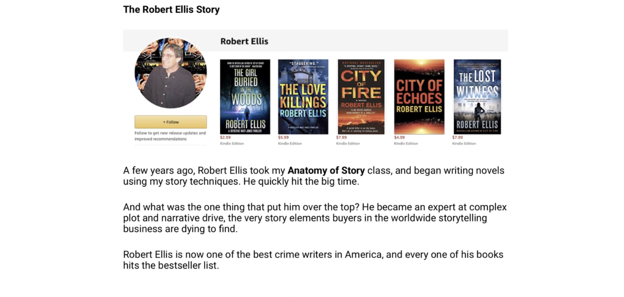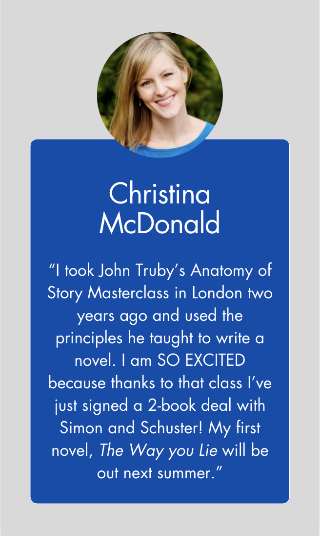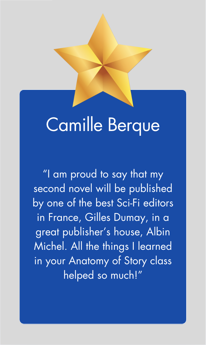 The Anatomy of Story Class, in 12 video modules, is THE system for writing compelling screenplays, teleplays, and novels that encompasses every story component you need to write stories that sell.